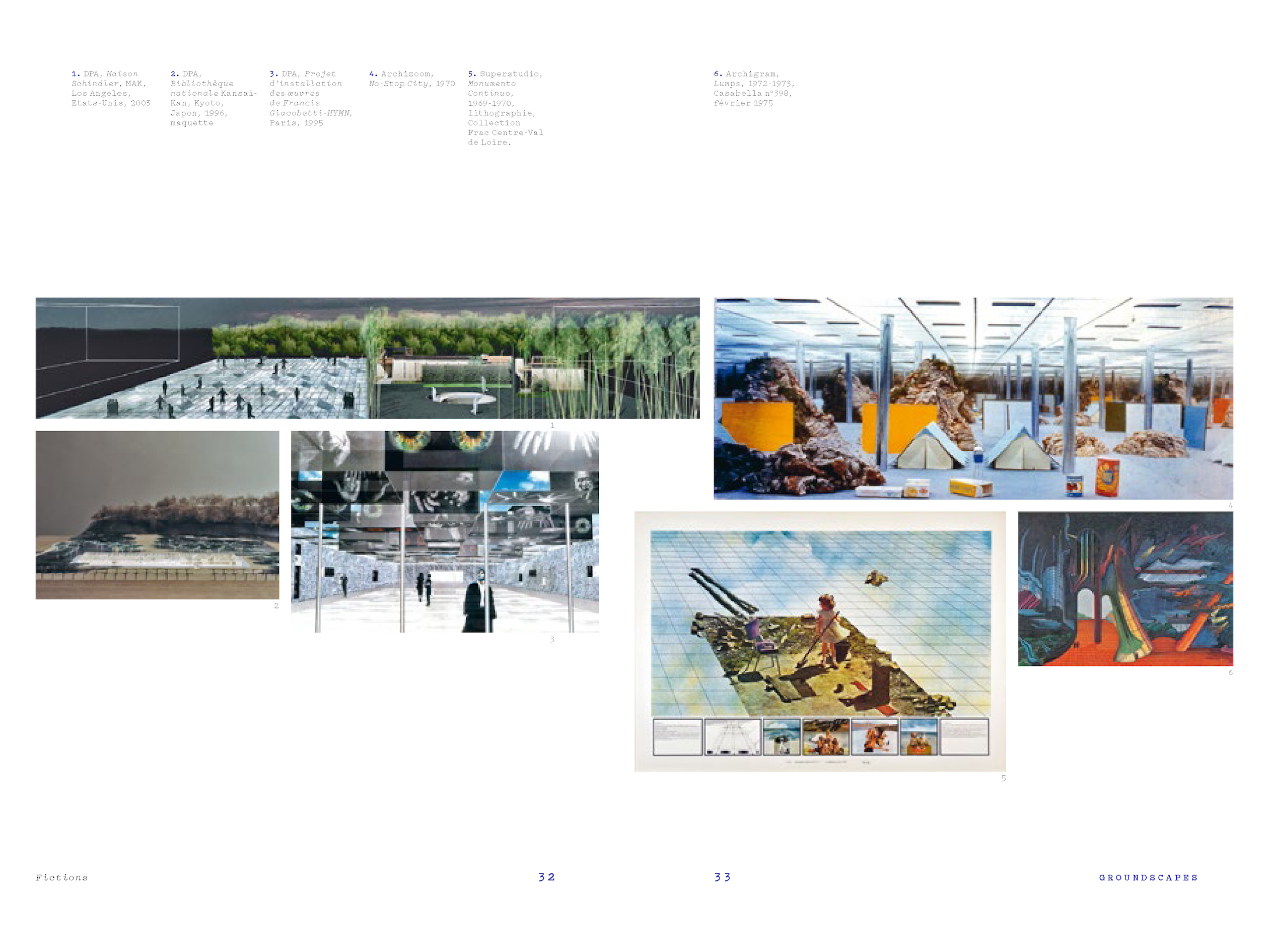 Dominique Perrault imagine et conçoit des fictions, ses "Groundscapes", futurs possibles de l’architecture qui ouvrent chaque chapitre du livre et proposent une réalité différente de la réalité construite. Il s’agit pour lui de révéler des ressources que notre réalité urbaine ne prends pas en compte afin d’étendre le champ architectural. La plupart de ces fictions concerne Paris, lieu de vie de l’architecte et territoire de son imaginaire. La fiction de l’Arc de Triomphe posée sur une dalle de verre permets de prolonger le monument, de dévoiler de nouveaux espaces, d’occuper mieux ce qui existe déjà. Dans la fiction de l’avenue Foch, c’est la notion de contexte dans son ensemble qui se transforme, celle de paysage, de territoires. Face aux mutations économiques, sociales et culturelles, c’est une réflexion politique, éthique et écologique que l’architecte nous propose de partager.
